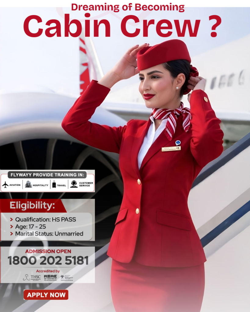 Welcome to Flywayy Institute, the premier destination for aspiring cabin crew or flight attendants seeking top-notch cabin crew training institute of India. We are dedicated to providing comprehensive Aviation and Hospitality Service Management courses that equip you with the skills and knowledge necessary to thrive and build your career in the Aviation, Hospitality, Travel & Tourism, and Retail Management Industries. As an India’s No.1 Aviation Training and a leading aviation training institute of India, we offer expert instructors, state-of-the-art facilities, and a hands-on approach to learning. Flywayy Institute is also recognized as a top flight attendant training institute in India, guiding you on an exciting journey to becoming a skilled and confident professional in the aviation field. Flywayy is India’s No.1 Aviation Training Institute, transforming dreams into careers through professionalism, industry exposure, and personal growth. Our mission is to guide each student to success with quality education, expert mentorship, and unwavering support — helping them soar in the aviation and hospitality industry.